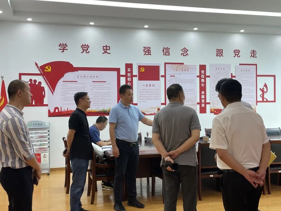 蘇環(huán)集團(tuán)總經(jīng)理孫振城親自帶領(lǐng)江蘇東吳路橋建設(shè)集團(tuán)公司領(lǐng)導(dǎo)團(tuán)隊參觀了黨建文化室,并為他們介紹了蘇環(huán)集團(tuán)的黨建品牌“紅色凝聚蘇環(huán)”。